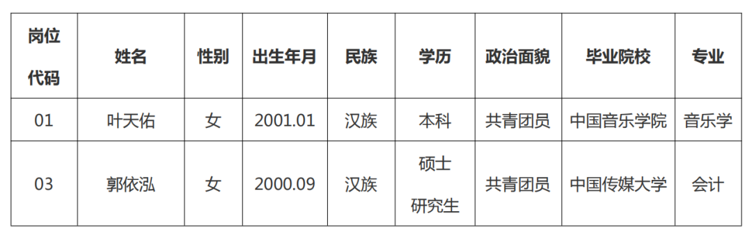 根据中国广播影视出版社有限公司2024年高校毕业生公开招聘实施方案,经过严格履行发布招聘公告、报名与审核、笔试、面试、考察、体检等程序,经研究,拟接收2名2024年高校毕业生,现将有关情况予以公示。公示期为自发布之日起7个工作日。公示期间,如有异议可向中国广播影视出版社有限公司人力资源部反映,联系电话:010-86094046。